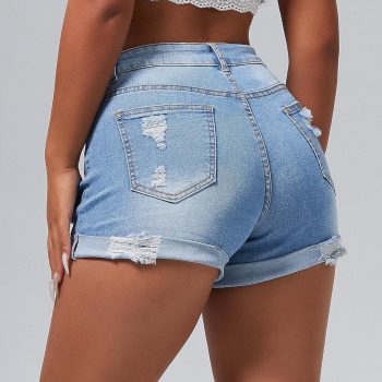 Women’s Jean Shorts High Waisted Stretchy Casual Rolled Hem Denim Shorts