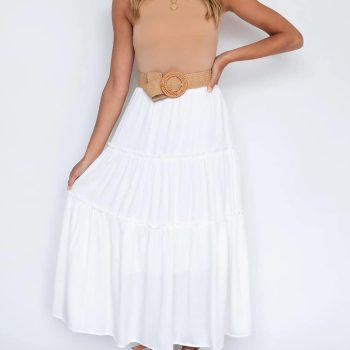 Women’s Long Summer Skirt Elegant High Waist Cocktail Party Wedding Guest Dress Flared A-Line Midi Skirts