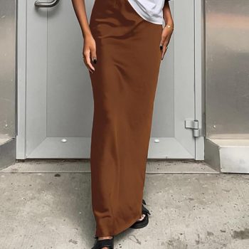 Women’s Leopard Print Satin Maxi Skirt High Waisted Elastic Waistband Silk A-Line Casual Party Summer Long Skirts