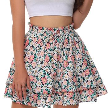 Women’s Boho Ruffle Skirt Floral Tiered Mini Skirts with Shorts Underneath