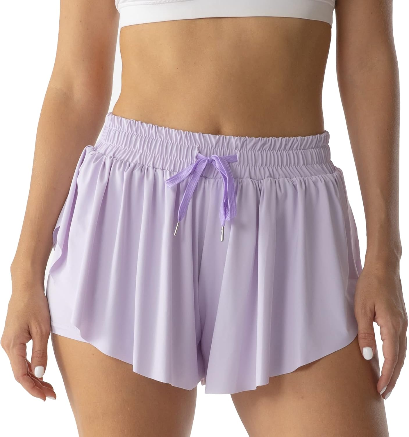 - Double Layer Design Butterfly Shorts: Elastic inner layer design and openning hems of this girls butterfly shorts provide greater freedom of movement for this womens flowy shorts, let you move freely and comfortably as you run, jump, twist and bend, These flowy running shorts for women have adjustable elastic waistband with drawstring, which perfectly smooth fit around your body.