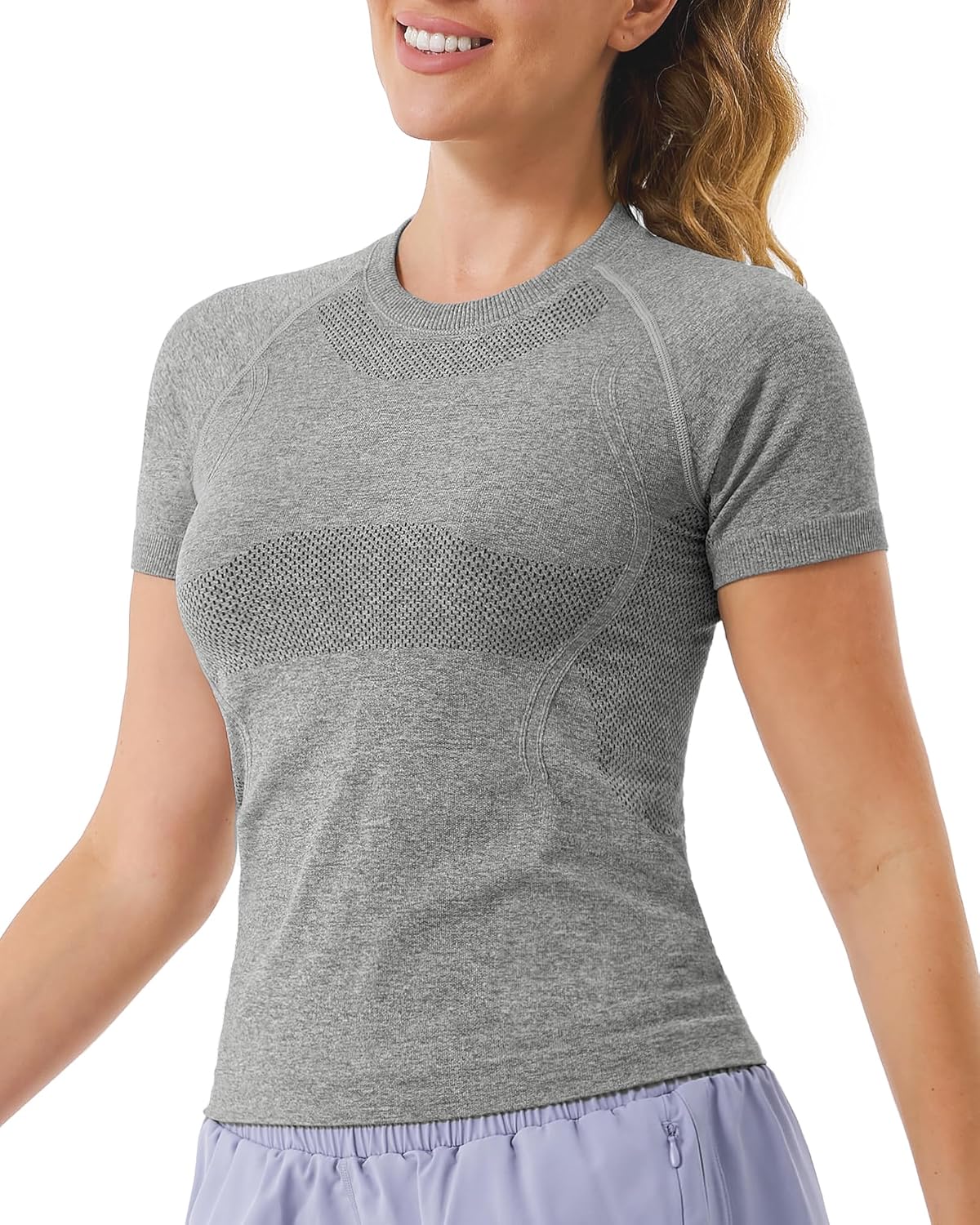 - Made for Movement: Soft, stretchy, and seamless—these women’s short-sleeve workout tops have it all! Our mesh-paneled fabric is thick enough to hide embarrassing lines but breathable enough to stay comfortable.